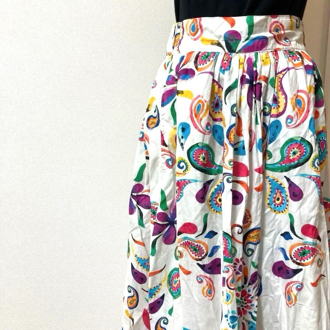 - 美品 ピオンボ PIOMBO ロングスカート マキシ丈 インド綿100 ペーズリー ホワイト S