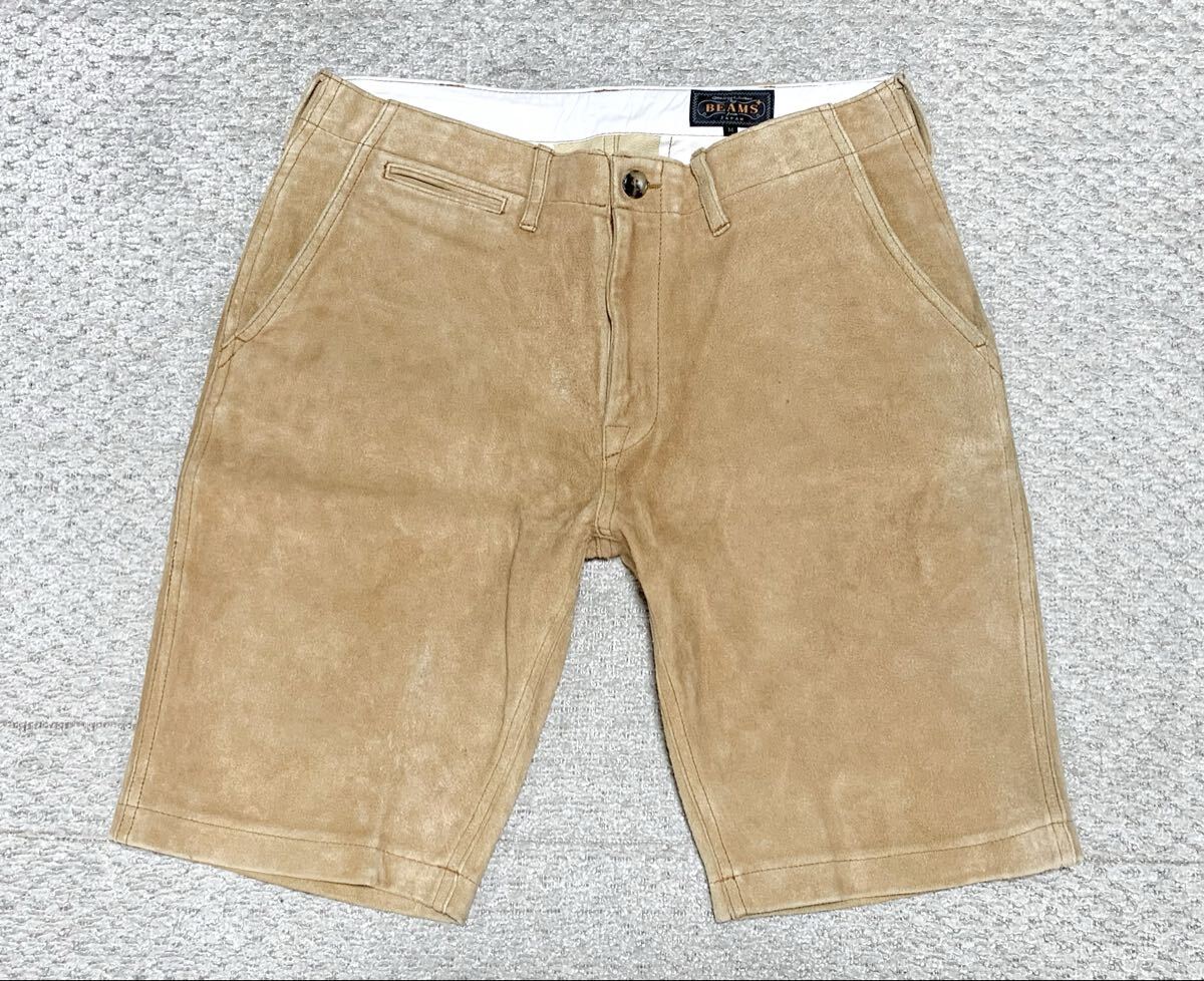 - BEAMS.ゴート スエード レザー ショート パンツ M(ショーツ/上質.山羊革/W82股下25/パンク/裏原/awa good enough minority type)