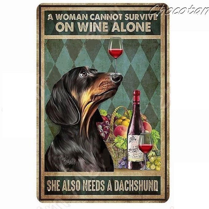 - 【送料無料】ダックスフンド ワイン メタルサインプレート【新品】