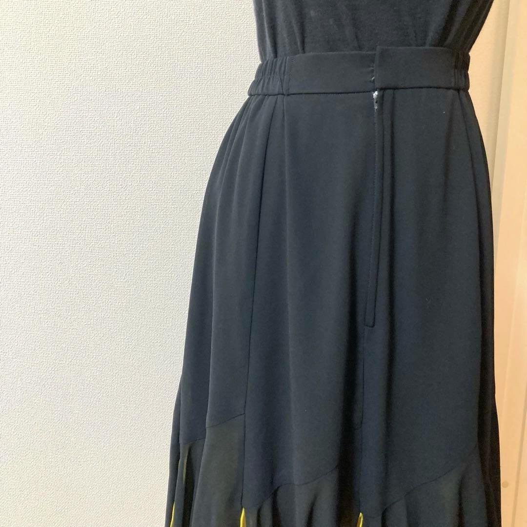 > 希少 ユーナ U-NA ひざ丈スカート フレア フリル アシンメトリー 社交ダンス バイカラー 黒黄 フリーサイズ