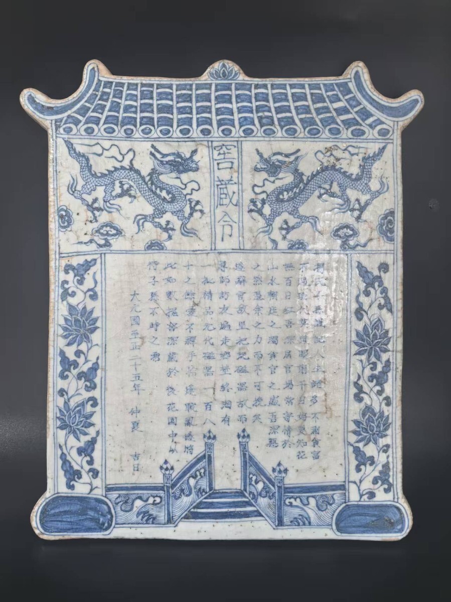 - 中国古美術 元時代 青花 磁板 唐物 陶磁器 骨董 在銘 古玩 時代物 中国美術 古美術 js20