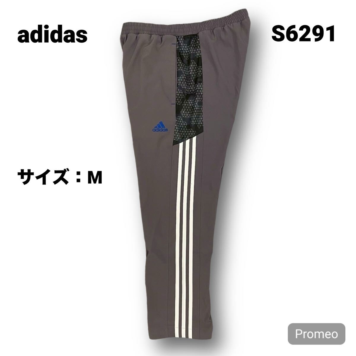 > 【S6291】 adidas アディダス ナイロンパンツ サイズM グレー 灰色 刺繍ロゴ メンズ ボトム 最落なし 古着