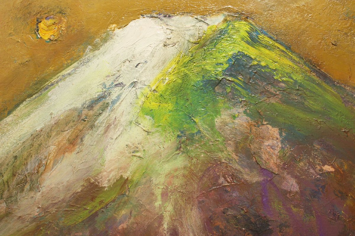 > 【董芸】炎の陶人 心象画家 月形 那比古 晩期(1991年) 筆 『富士』油絵 12号 真作保証 [10761]
