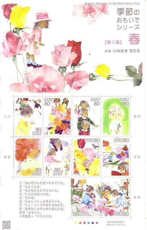 - 「季節のおもいでシリーズ 第2集 春 いわさきちひろ」の記念切手です