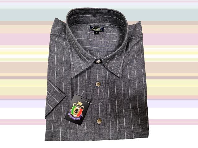 > 41261-2-a60■チャコール系■LLサイズ■Franco Collezioni/フランコ・コレツィオーニ 綿麻 ストライプ 半袖シャツ