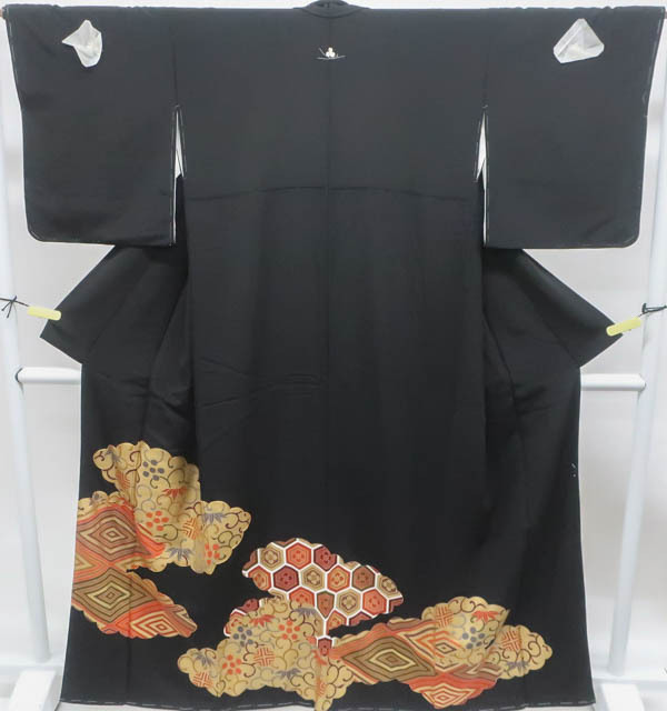 - 《京都一輝堂》リサイクル着物 黒留袖 五つ紋 金彩 古典文 比翼仕立て しつけ付 正絹 身丈約162.5cm 裄丈約66cm 25z08-4645