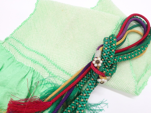 - 《京都一輝堂》リサイクル着物 和装小物 帯締め 帯揚げ セット 帯締 帯揚 振袖用 総絞り 丸組 金糸 飾り付き 25w07-9275
