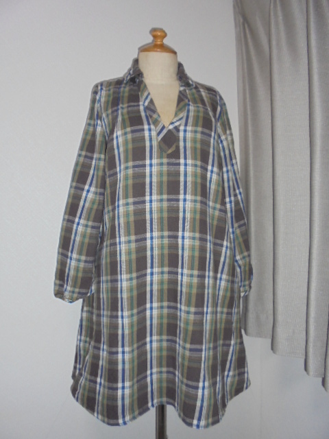 - 焦げ茶格子チェック柄襟付きスキッパー型チェニック