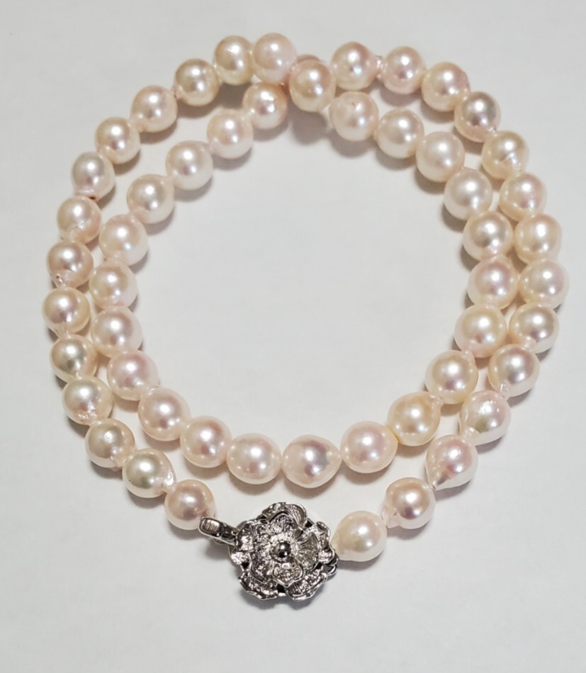 > SILVER シルバー刻印 本真珠 ネックレス パール幅7.4mm レディース アクセサリー 重さ31.1g 長さ43cm ホワイトピンク 美品