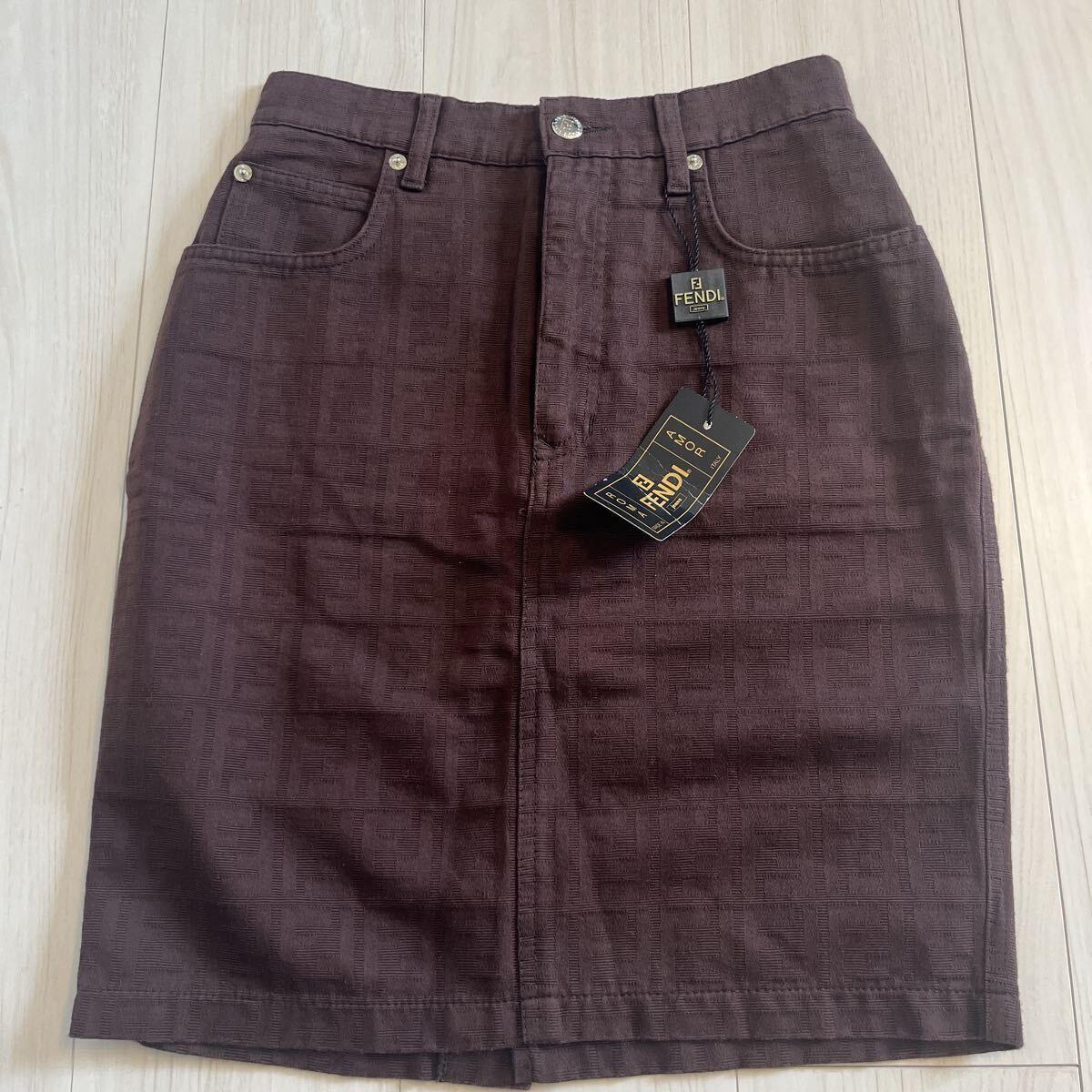 > 1円スタート 新品タグ付き FENDI フェンディ スカート ブラウン イタリア製 レディース オールド ビンテージ