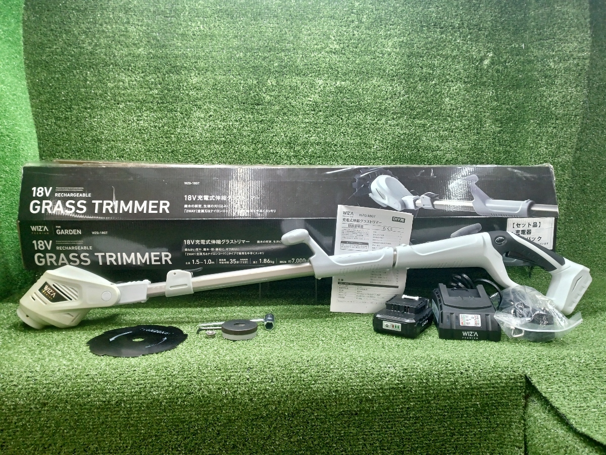 - 中古 ウイザ WIZA 18V 充電式 伸縮グラストリマー 2.0Ah バッテリー 充電器 付 WZG-18GT