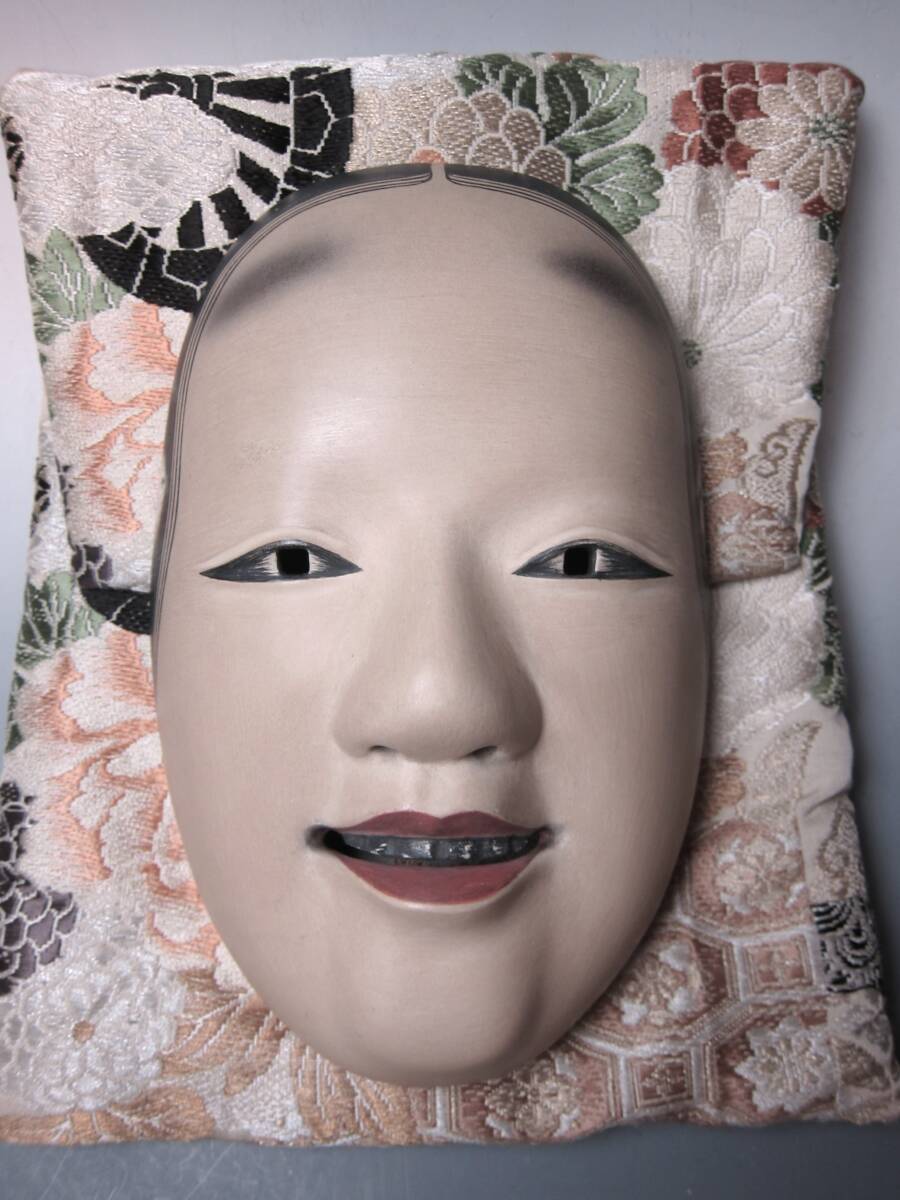 - 能面・小面・花押有り・面袋・共箱・嬉野紀孝作(浅間神社宮司)