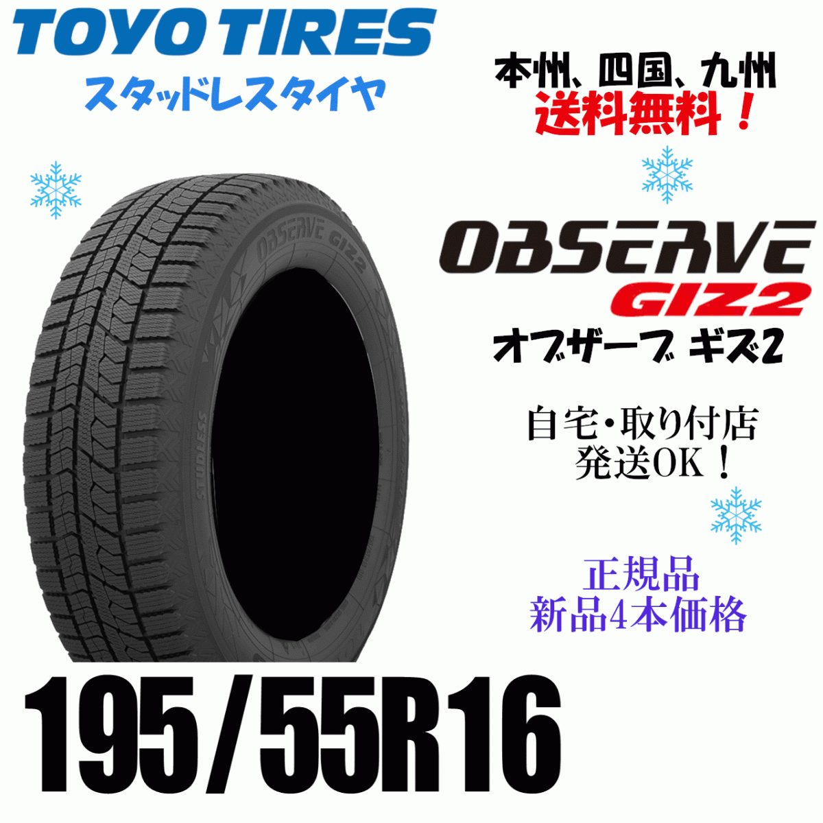 - 195/55R16 87Q 送料無料 新品 4本価格 トーヨー オブザーブ GIZ2 OBSERVE ギズ2 スタッドレスタイヤ 個人宅 ショップ 配送OK