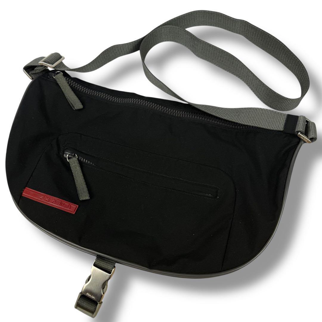 - 【極美品】y2k PRADA SPORT プラダスポーツ ロゴ ラベル プレート ショルダーバッグ ボディバッグ ブラック 黒 4VS055 メンズ レディース