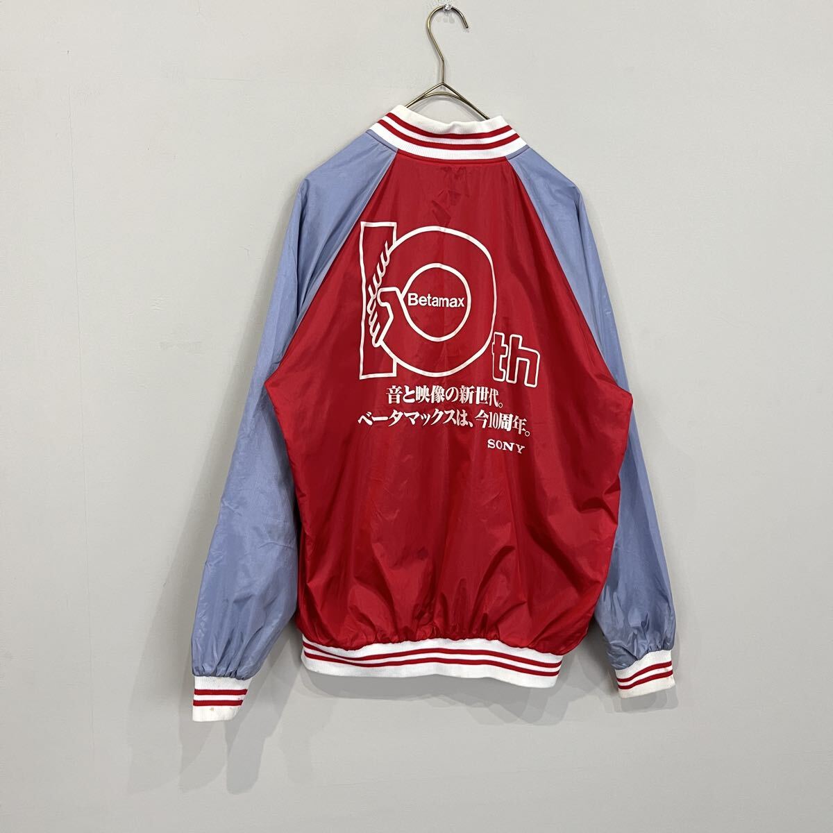 - SONY ソニー Betamax pro 10周年記念 ノベルティ ナイロンコーチジャケット スタジャン リバーシブル ナイロン×パイル地 メンズ 赤 青 紺