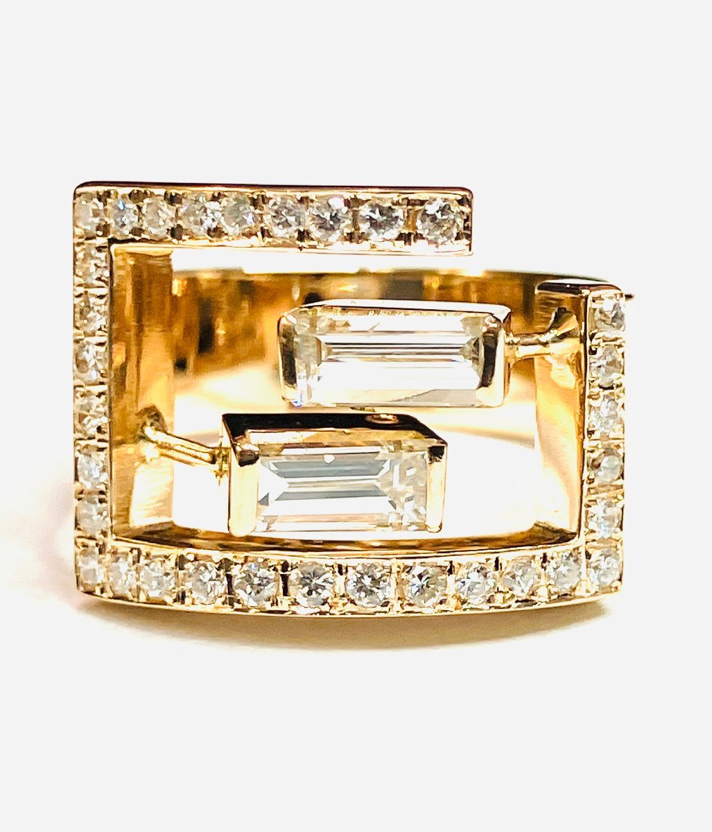 > K18 ゴールド テーパーカットダイヤモンド スクエアーリング 中石0.66ct/枠石0.24ct 9号 qoj.Z0M01