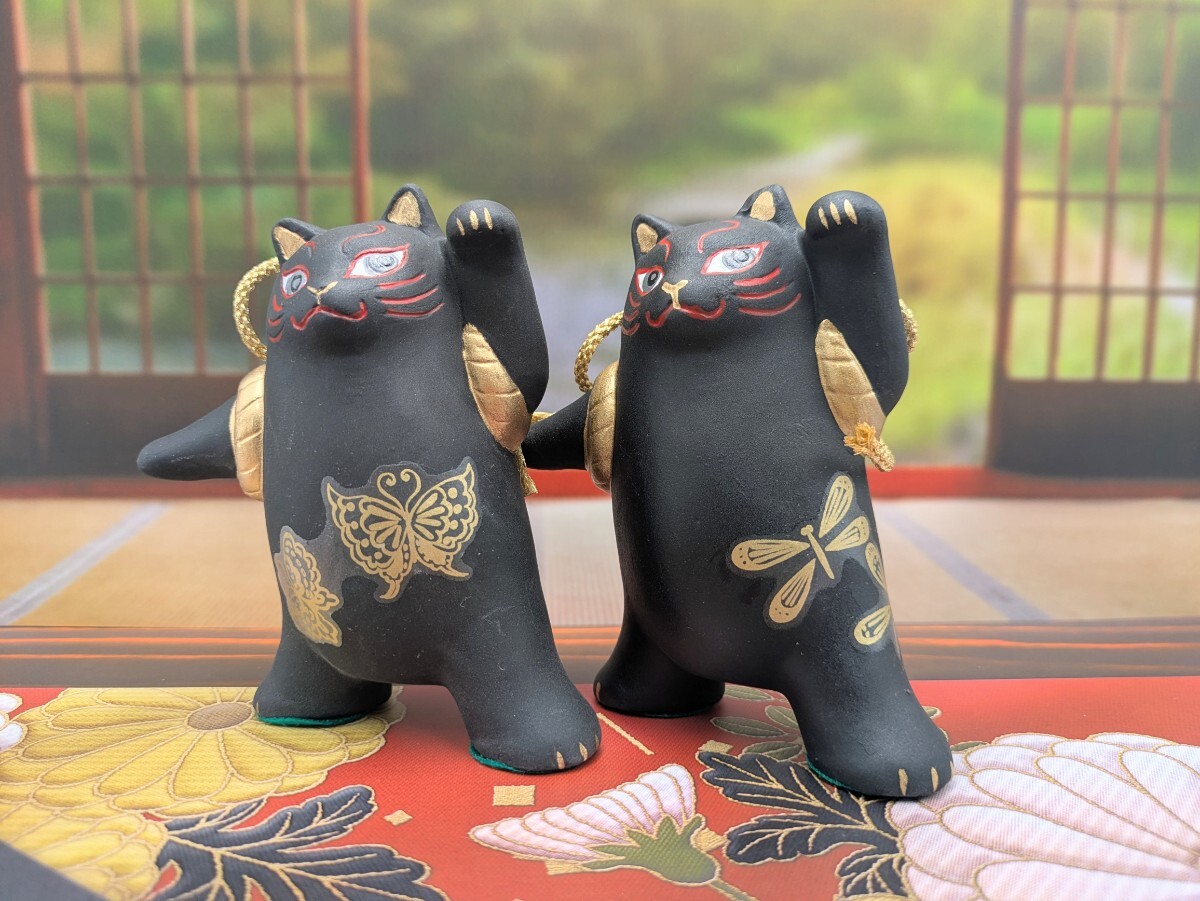- 瀬戸焼 縁起物 招き猫 歌舞伎猫 蝶 トンボ 2種セット チョウチョ ちょうちょ とんぼ 陶器 置物