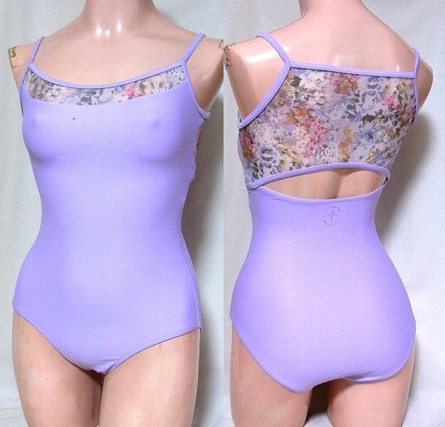 - ★☆外国製 Wear Moi 透け花柄入りラベンダー色キャミソールレオタード☆★