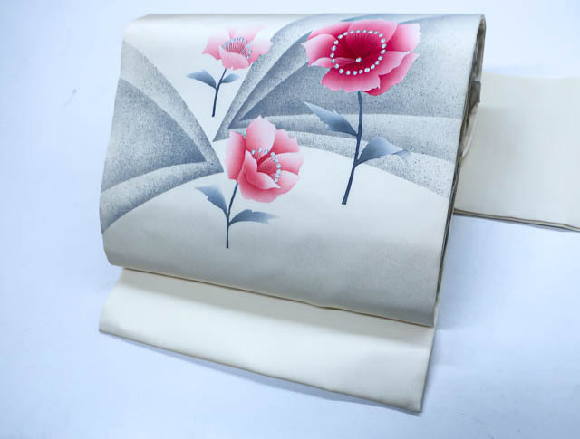 - 《京都一輝堂》【着物】 九寸名古屋帯 お太鼓柄 花文様 24B-1238