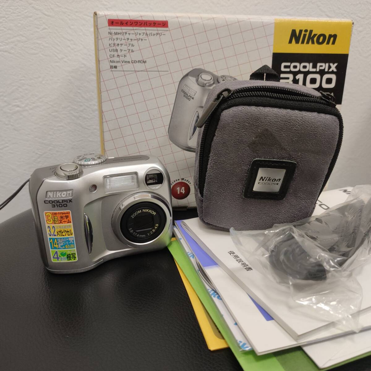 > Nikon COOLPIX 3100 通電/ジャンク 単三電池 コンパクトデジタルカメラ 箱説・CFカード8MB付 ニコン クールピクス