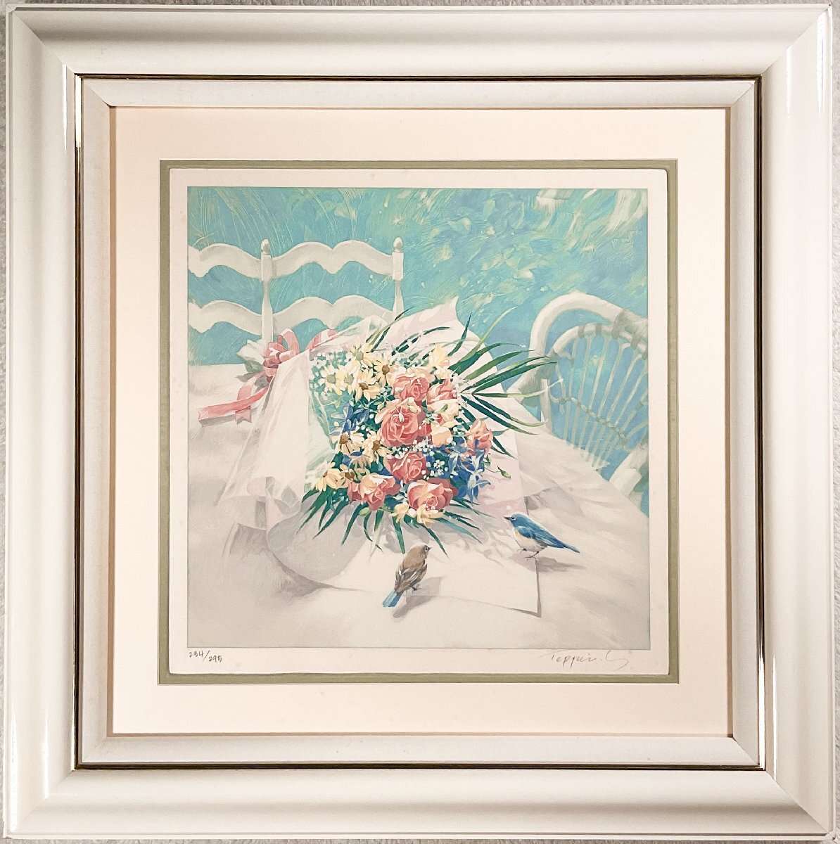 > 笹倉鉄平(1954-)●隠れた名作『ブレストンコートにて』78色シルクスクリーン版画●1996年制作●花束を描いた手放す人が少ない希少作品