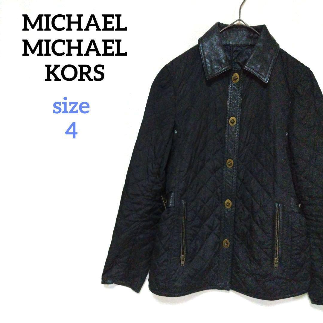 - MICHAEL MICHAEL KORS マイケルマイケルコース 羊革ドッキングキルティングジャケット ベルト ラムレザー ターンロック ブラック 黒