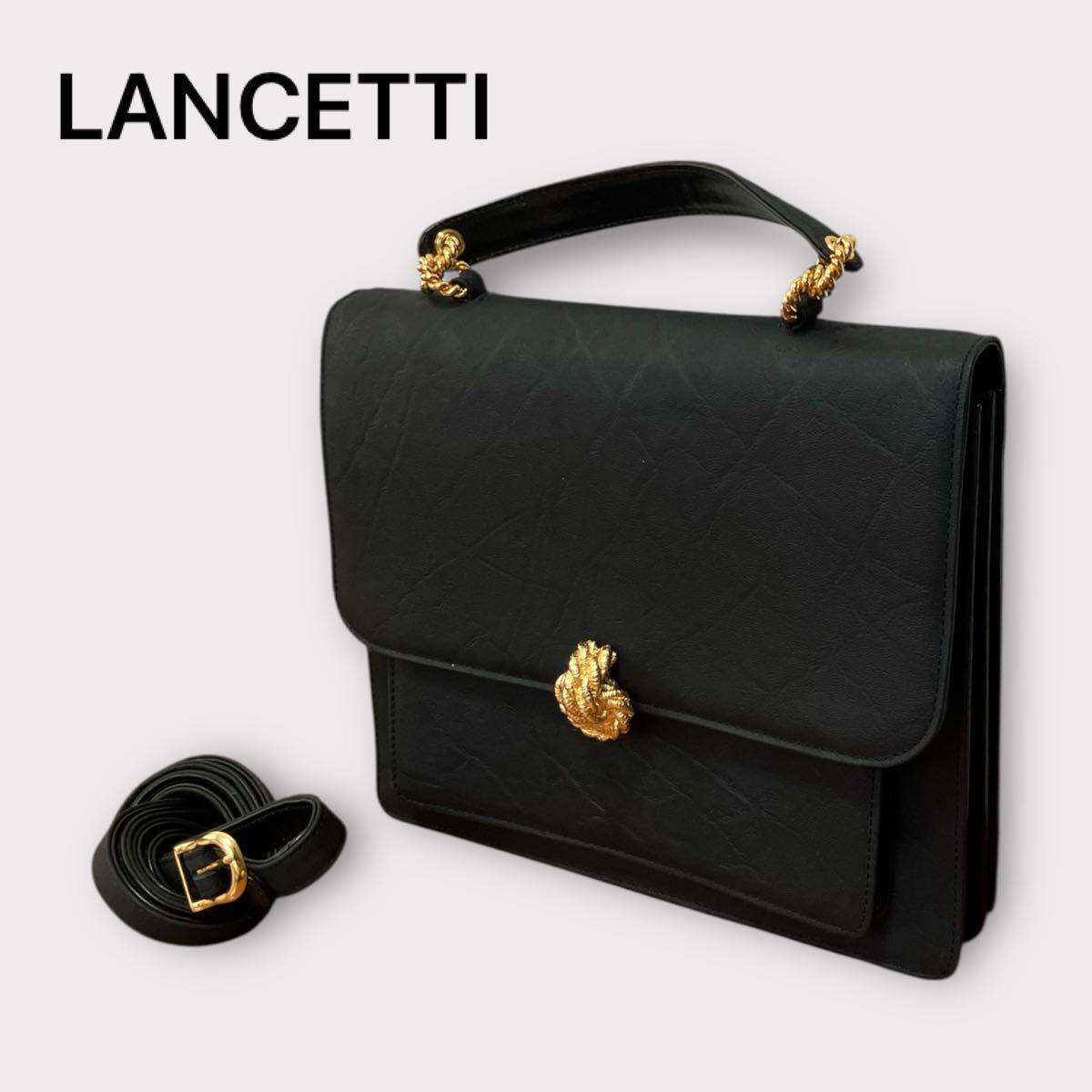 - LANCETTI ランチェッティ 2WAY ショルダーバッグ ハンドバッグ エレファントレザー 象革 ゴールド金具 極美品 ブラック
