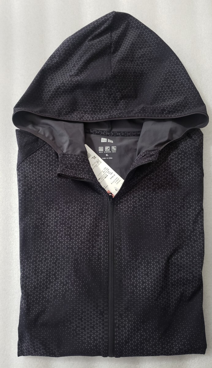 - XLサイズ 新品 UNIQLO ドライEX UVカットフルジップパーカー 黒 ブラック 柄 長袖 スーパーストレッチ ユニクロ UPF50+ 送料無料