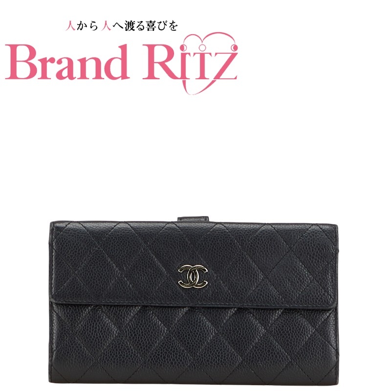 - 中古 シャネル マトラッセ ココマーク 長財布 キャビアスキン ABランク ブラック レディース CHANEL【送料無料】【三田店】