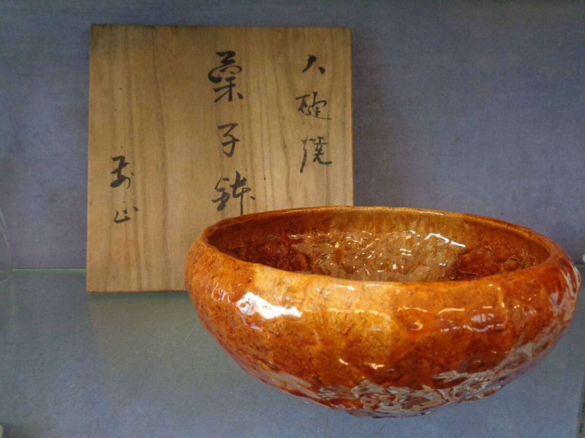 - お茶道具 大樋焼 菓子器 作者印有 木箱入り 未使用保存品