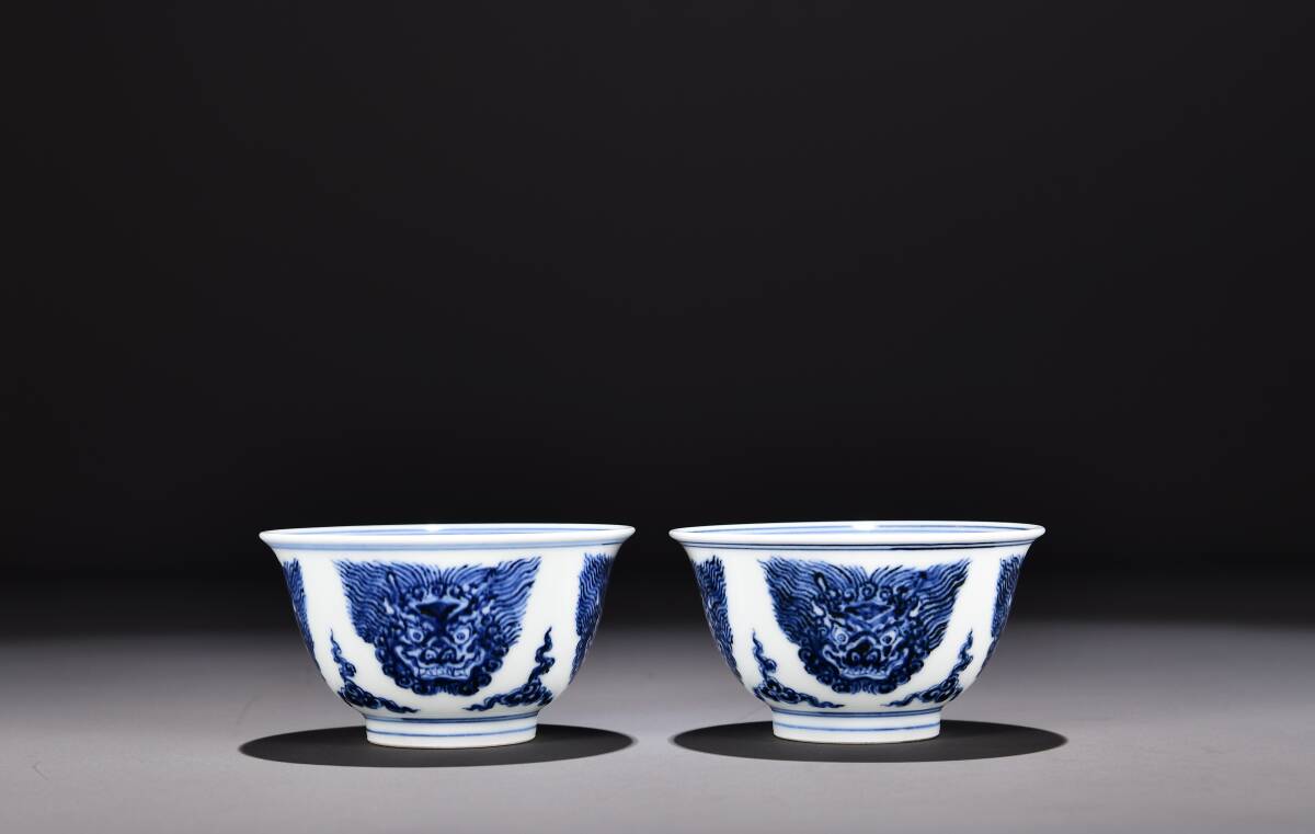 - 【超珍館蔵】明 宣德年制款 古陶瓷品 青花 獣面紋 供杯 陶藝 古賞物 古董品 古美術品 時代物 旧家蔵出 稀少珍蔵品