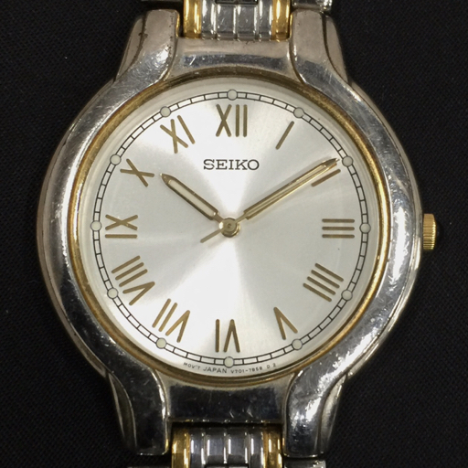 > セイコー クォーツ アナログ 腕時計 メンズ V701-7A40 ラウンド シルバーカラー文字盤 未稼働 純正ブレス SEIKO