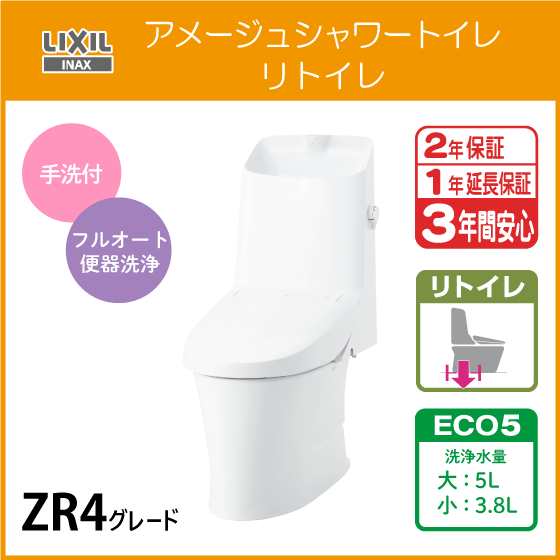 - 一体型便器 アメージュシャワートイレ リトイレ(手洗付) ZR4グレード BC-Z30H DT-Z384H リクシル LIXIL INAX