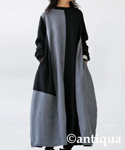 > アンティカantiqua★大人っぽくも個性を忘れない! すっきり着映えるフェイクスエード★モノトーンコクーンワンピース