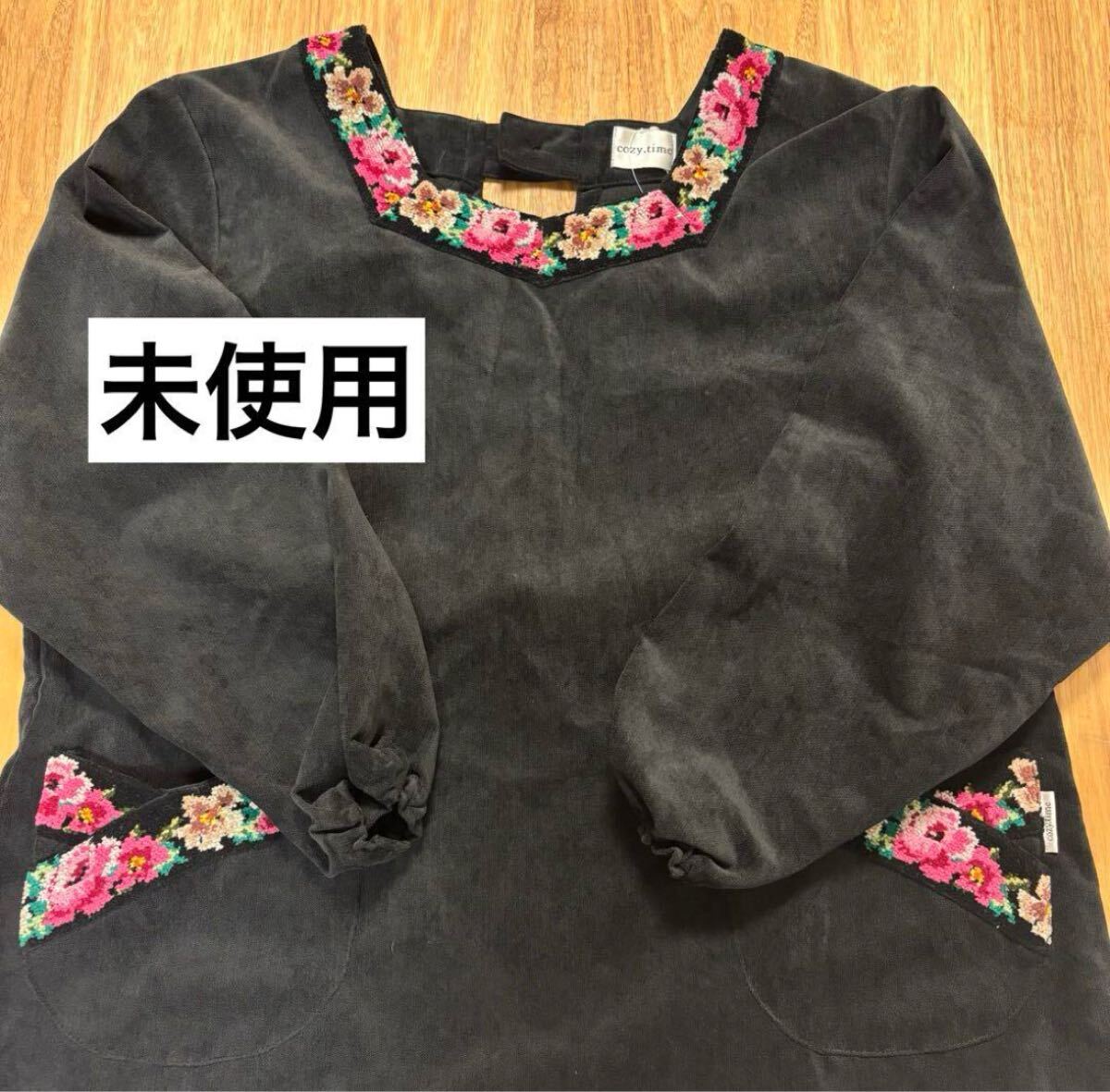 - 未使用◇cozy time◇シェニール織×ピンコーデュロイエプロン◇BLACK
