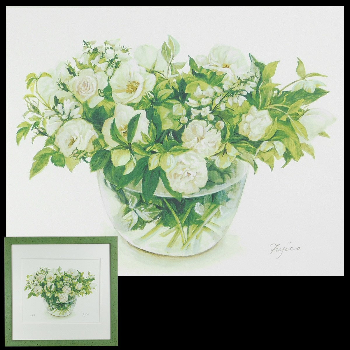 - 橋本不二子 静物画 ダイヤモンドスクリーニング 額装 ボタニカルアート グリーン 師:ミューラーブロックマン ka2510N02