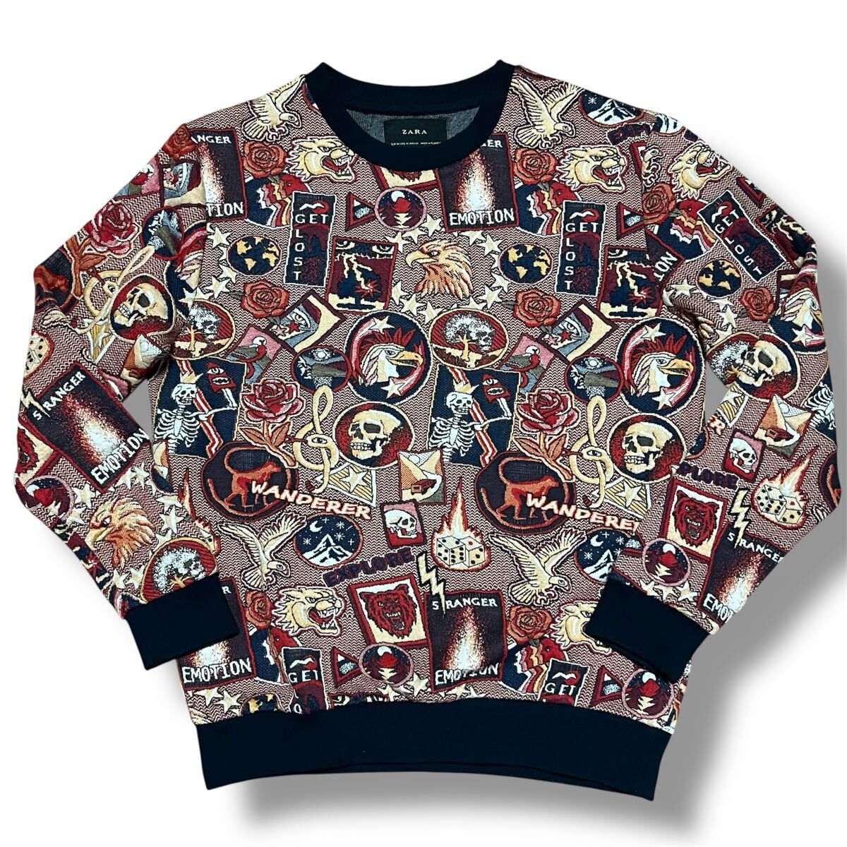 - ZARA ゴブラン調 立体刺繍 3D刺繍 ジャガード スウェット 完売品 ザラ 廃盤品 ビンテージデザイン アメカジ ZARA ORIGINS ZARA MAN