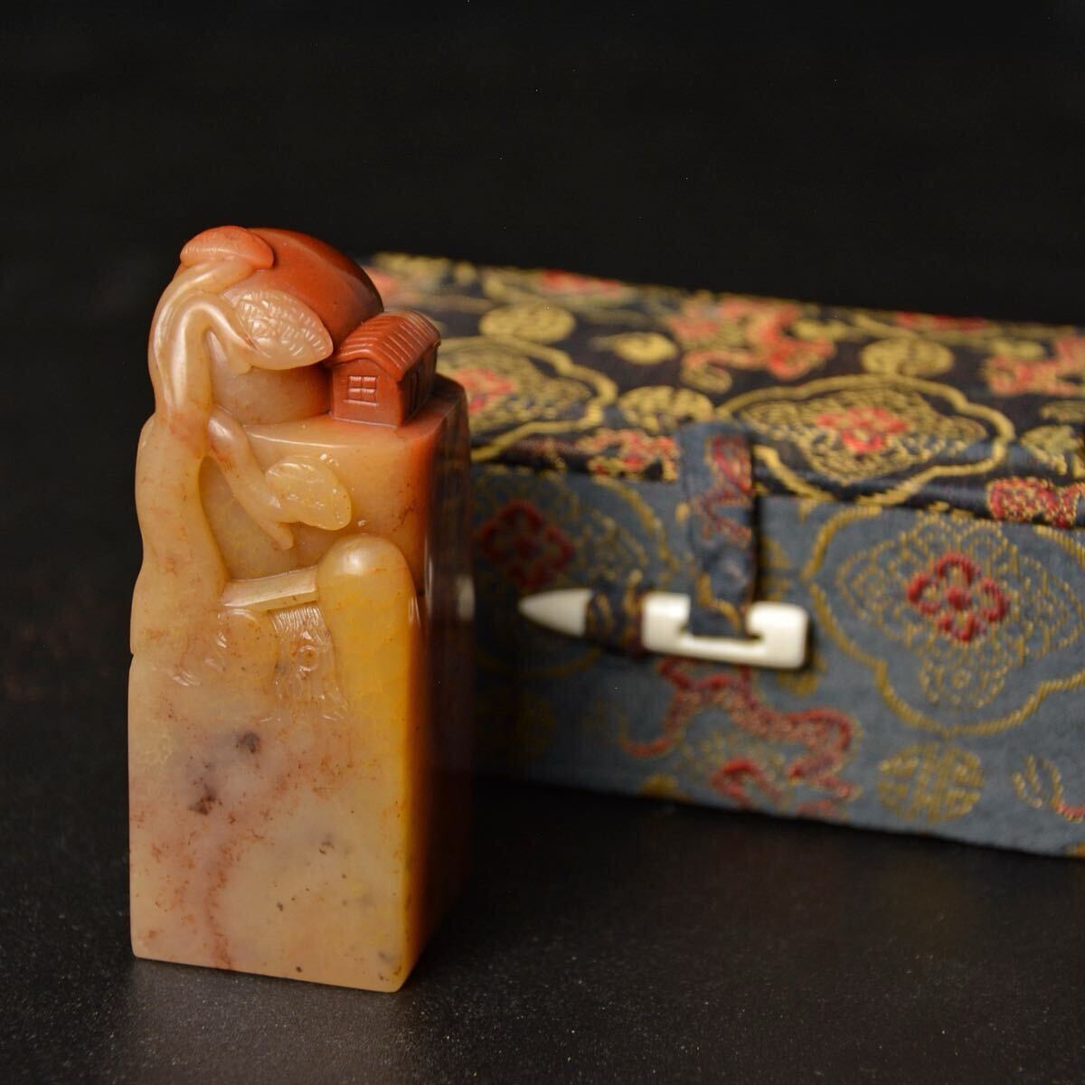 - 小舫 篆刻 寿山石 山水 杜陵坑 1980年代 検:印材 箱付 書道 印章 時代物 印鑑 中国美術 古美術 田黄石 鶏血 b0269