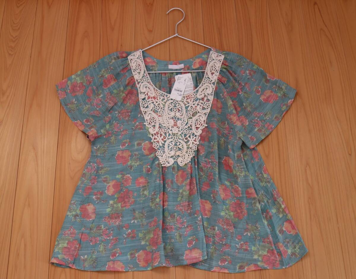 > 【賢くおしゃれ♪】新品*CHIME チャイム*バテンレースが美しい花柄エキゾチック大人可愛いチュニック L ライトブルー系 サニークラウズ人気