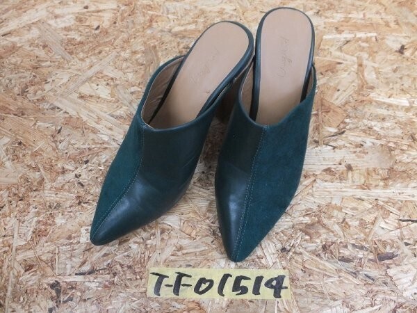 > ungrid アングリット レディース レザー&スウェード サボサンダル ヒールパンプス グリーン 緑 S