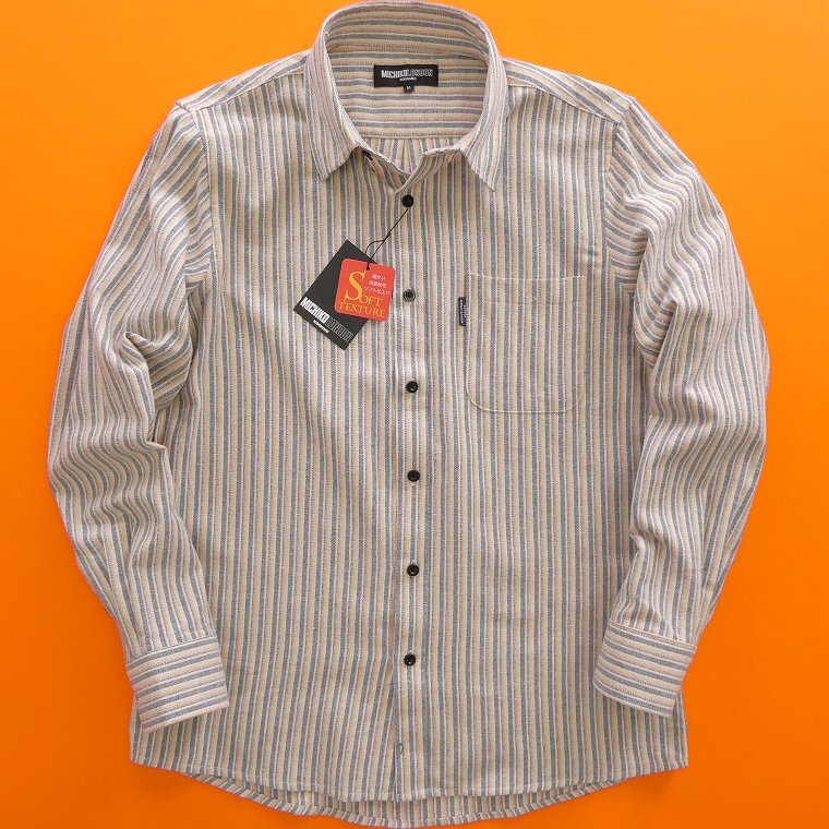 - 新品 ミチコロンドン 25秋冬 コットン フランネル シャツ 【ml8w-h501_OR_M】 MICHIKO LONDON 長袖 ストライプ 起毛 ビエラ ネルシャツ