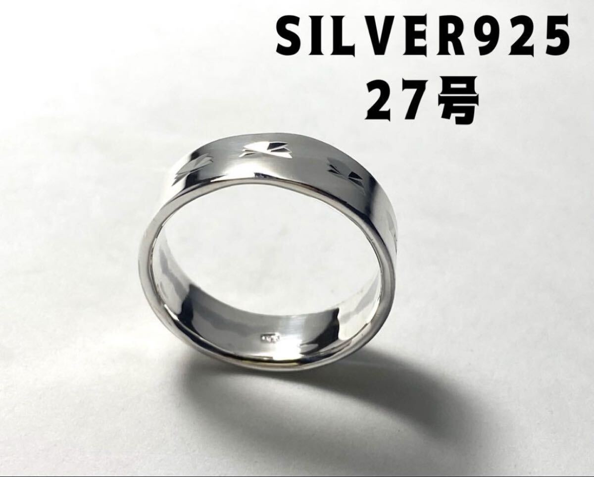 - BFJ4-5-314-12 カット 雪の結晶 花 平打ち6ミリスターリングシルバー925リング27号kkね