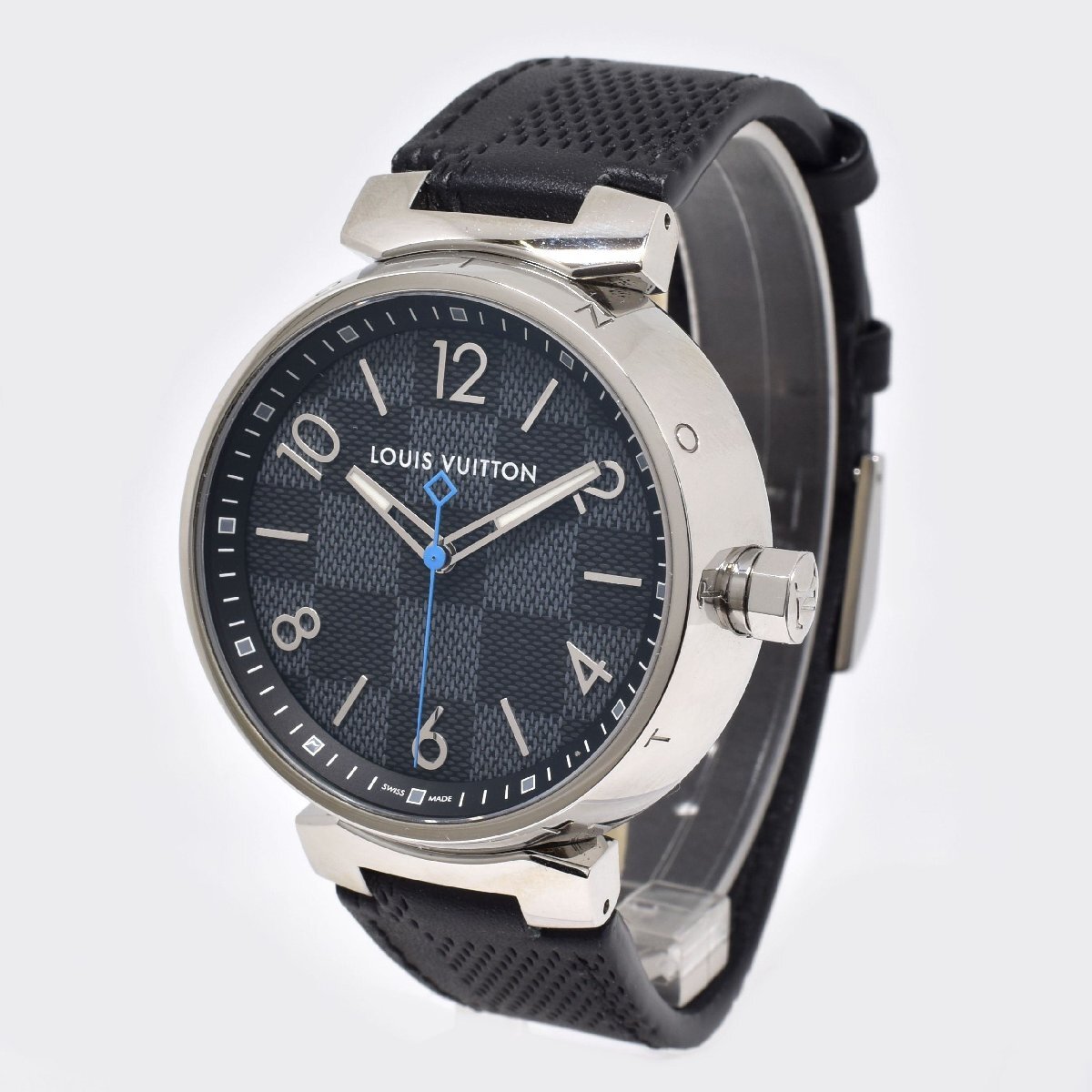 > ★仙台★質屋★新品同様★ルイヴィトン タンブール ダミエグラフィット QA073Z クオーツ ★腕時計 LOUIS VUITTON Tambour 男性用 メンズ