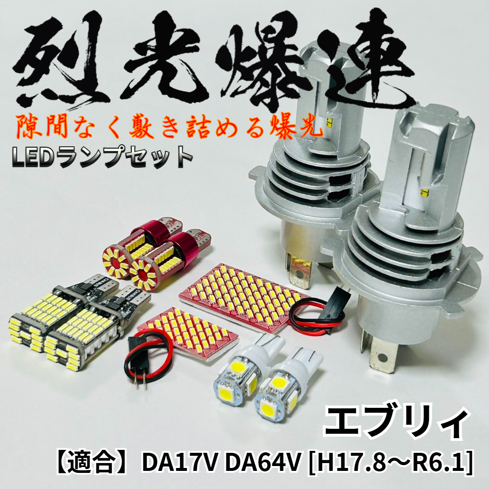 - エブリィ バン DA17V DA64V 烈光爆連 LED ルームランプ H4 ヘッドライト バックランプ ナンバー灯 ポジション球 セット 室内灯 内装 パーツ