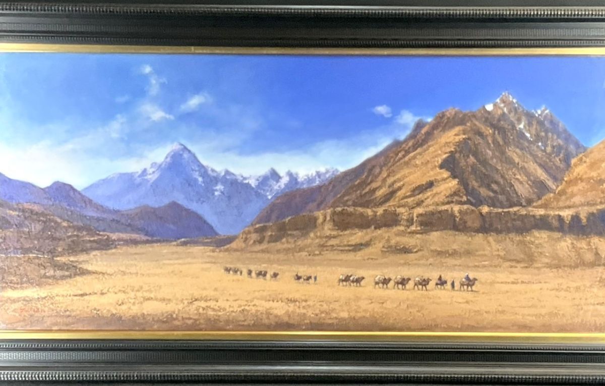 真作■油彩■多田博一■ 『カラコルムのキャラバン』■超大型ワイド・細密最高傑作■ 一枚の絵人気作家 ■額付絵画