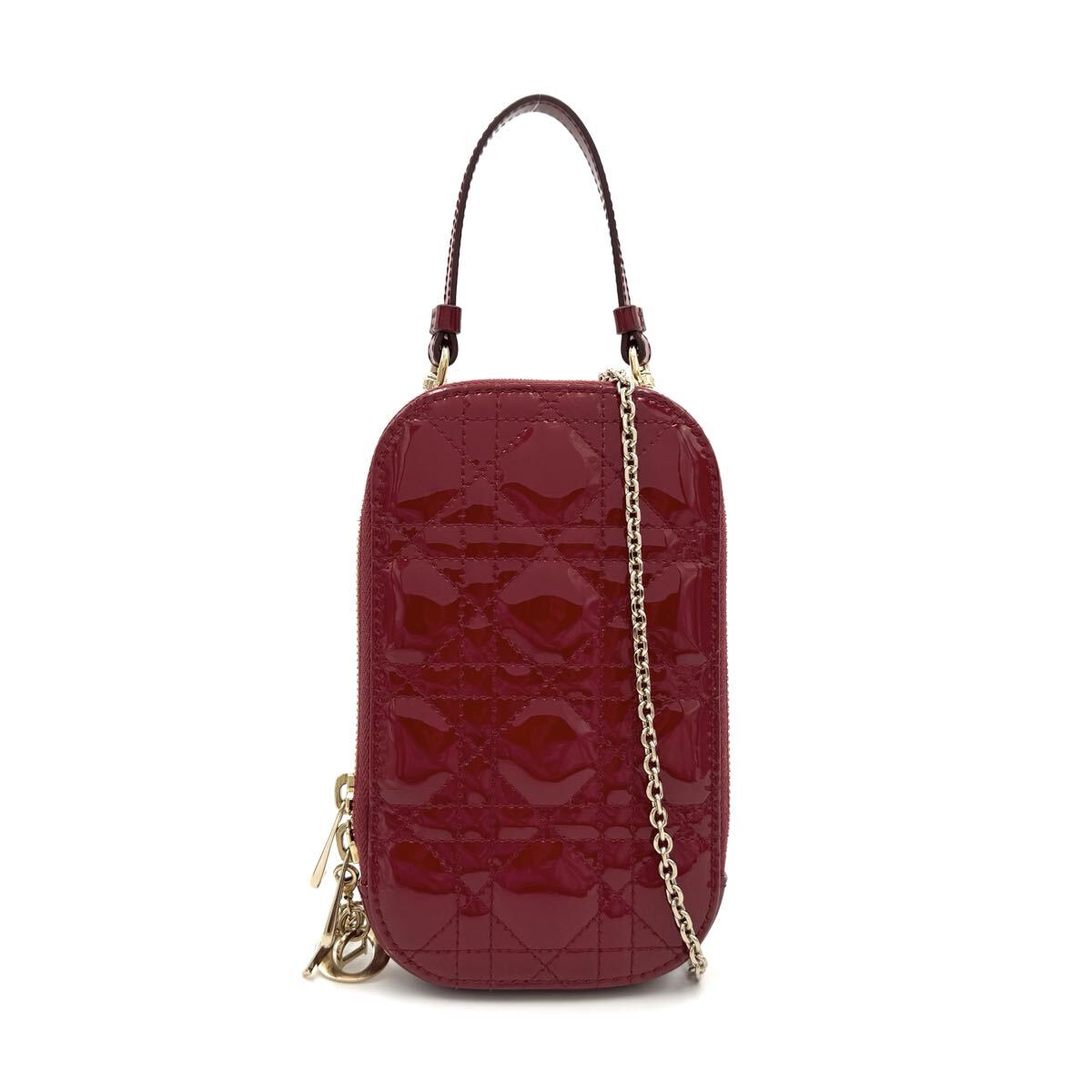 > ディオール コーリンディオール フォンホルダー カナージュ エナメル パテントレザー ショルダーバッグ スマホショルダー レッド