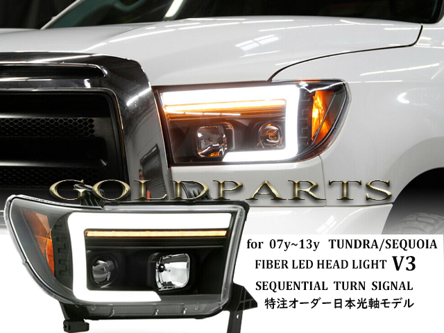 > 流れるウインカー【日本光軸モデル】 タンドラ/セコイア 07y~13y ファイバーLED ヘッドライトV3 4x4 SUV クロカン アメ車