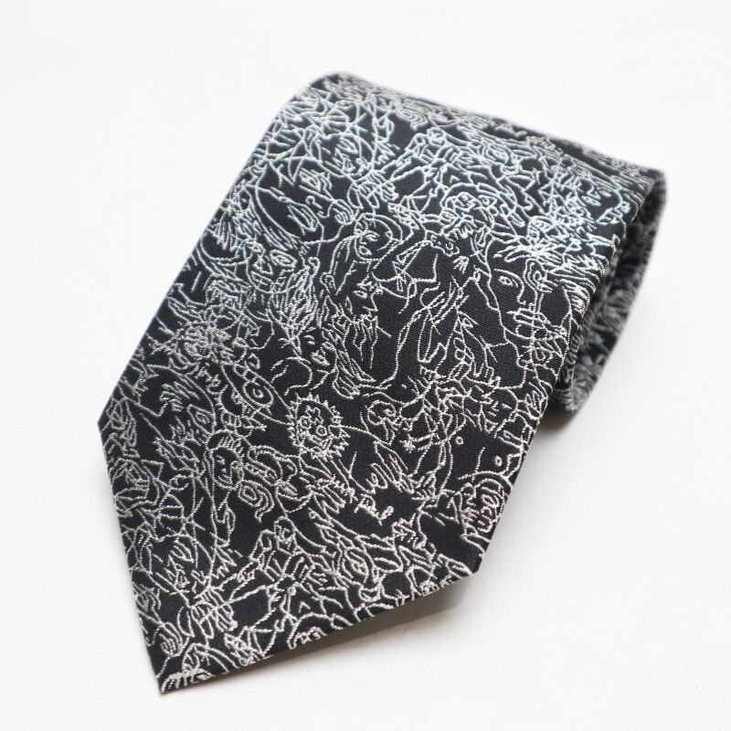 > K06-k130 Jean Paul GAULTIER HOMME ジャンポールゴルチエオム アートデザイン総柄 シルク ネクタイ ブラック