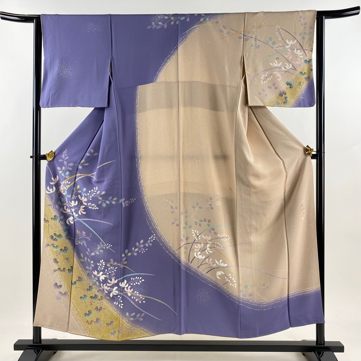 > 訪問着 身丈153cm 裄丈63cm S 袷 落款 萩 葉と実 染め分け ぼかし 薄紫 正絹 名品 【中古】