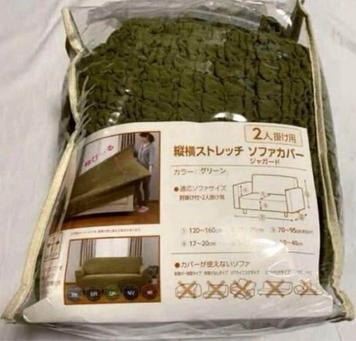 - 縦横ストレッチソファカバー 2人掛け用 グリーン